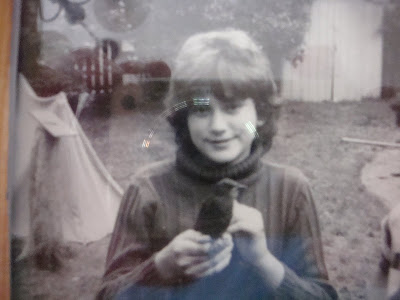 I keep this picture on my bedside table. It helps remind me who I want remain. It's me at eleven years old. I was still unspoiled by the world, but not completely naive to the pain of life. I didn't care about my weight, my hair, or what other people thought of me. I was nice to everyone and had a huge heart. Being out in nature and spending time with animals was my life. The bird I'm holding was my first successful Rehab. His name was Brat and he was a Starling that I was given by a neighbor, as a tiny naked hatchling. He survived and was released with a flock of Starlings. Behind me is my tent that I saved up green stamps for a year or more. On the stump are starfish from t he beach drying. The world seemed so full of possibilities, so exciting, each day a gift with something new and wonderful to discover.